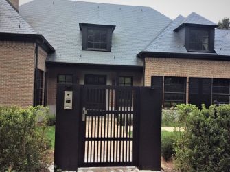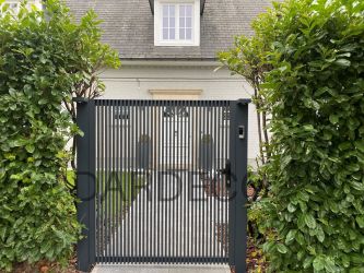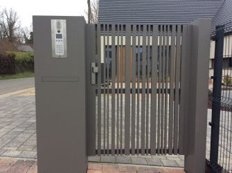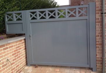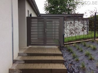 Portillon : modèle : lames verticales ajourées, finition en croisillons / Poortje : model : landelijke poort, opengewerkte met kruisverdeling
