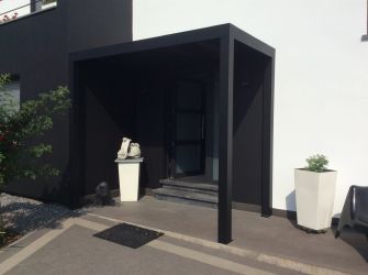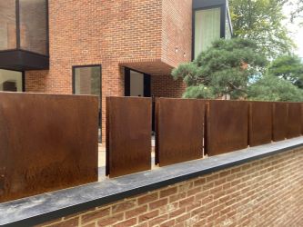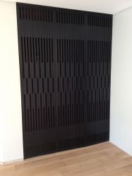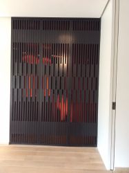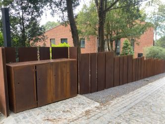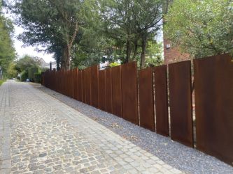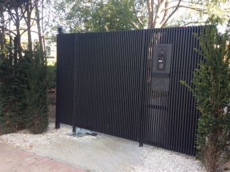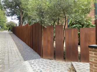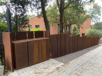 Portillon : modèle : planches verticales en bois de padouk / Poortje : model : opengewerkte padoek verticale planken