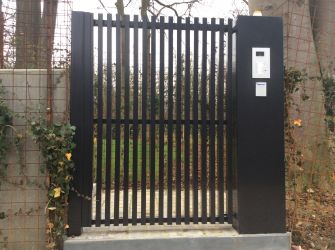 Portillon classique avec barreaux et fond de tôle pleine / Klassieke poortje met spijlen, plaatstalen bodem