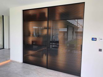 Portillon : modèle : lames horizontales inclinées (stores) / Poortje : model: schuine horizontale lamellen (jaloezieën)