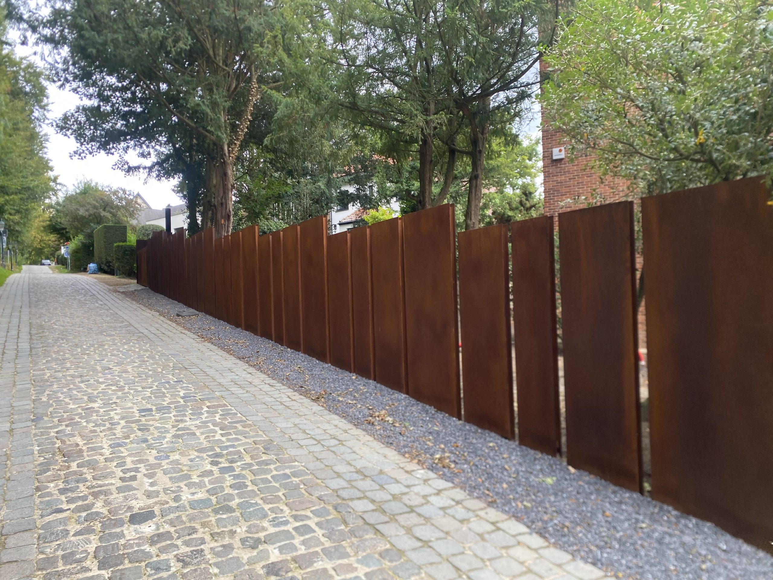 Portillon : modèle : planches verticales en bois de padouk / Poortje : model : opengewerkte padoek verticale planken